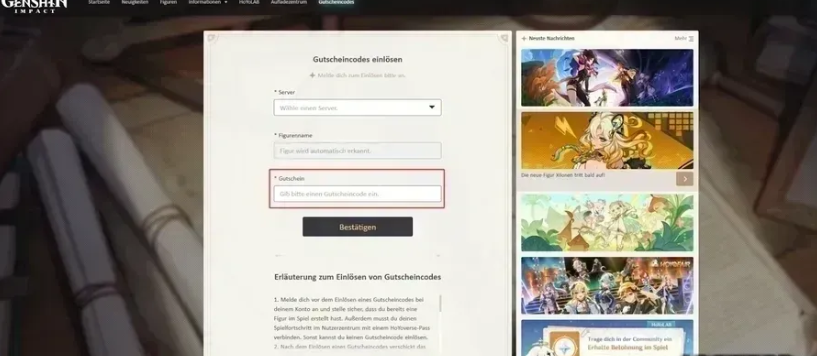 - Visit the official Genshin Impact redemption page.