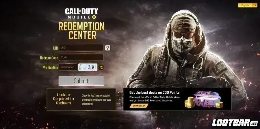 - Visit the COD Mobile Redemption Center